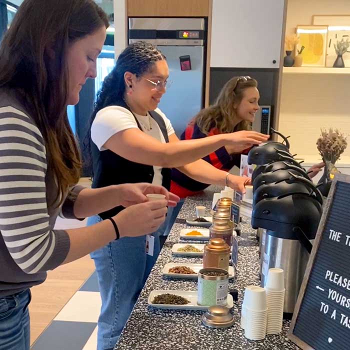 In a busier setting, a tasting can be a great way to draw in and engage passers-by. While this can also be organized as a private event, we've seen great success hosting tea tastings with less exclusivity. Setting up a selection of delicious, freshly-brewed teas in an office kitchen, studio space, or other members-only area can be an wonderful way to foster community and give everyone a treat.