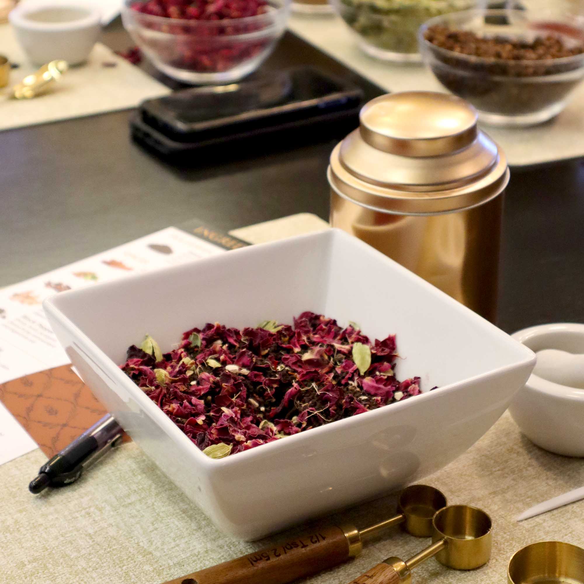 We can help make this a reality by hosting a hands-on tea blending workshop with a customized selection of ingredients. The focus could be anything from chai to seasonal herbal blends. You choose the direction, and we'll take care of the details, with instructional materials and place settings designed specifically for your needs. Your event attendees can learn and play, as well as sample and take home their unique creation.